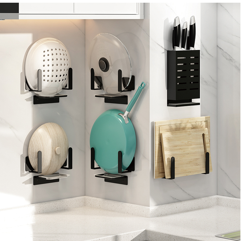 Free punching knife holder kitchen knife frame black shelve wall-mounted storage multifunctional chopstick rack drain chopping block frame