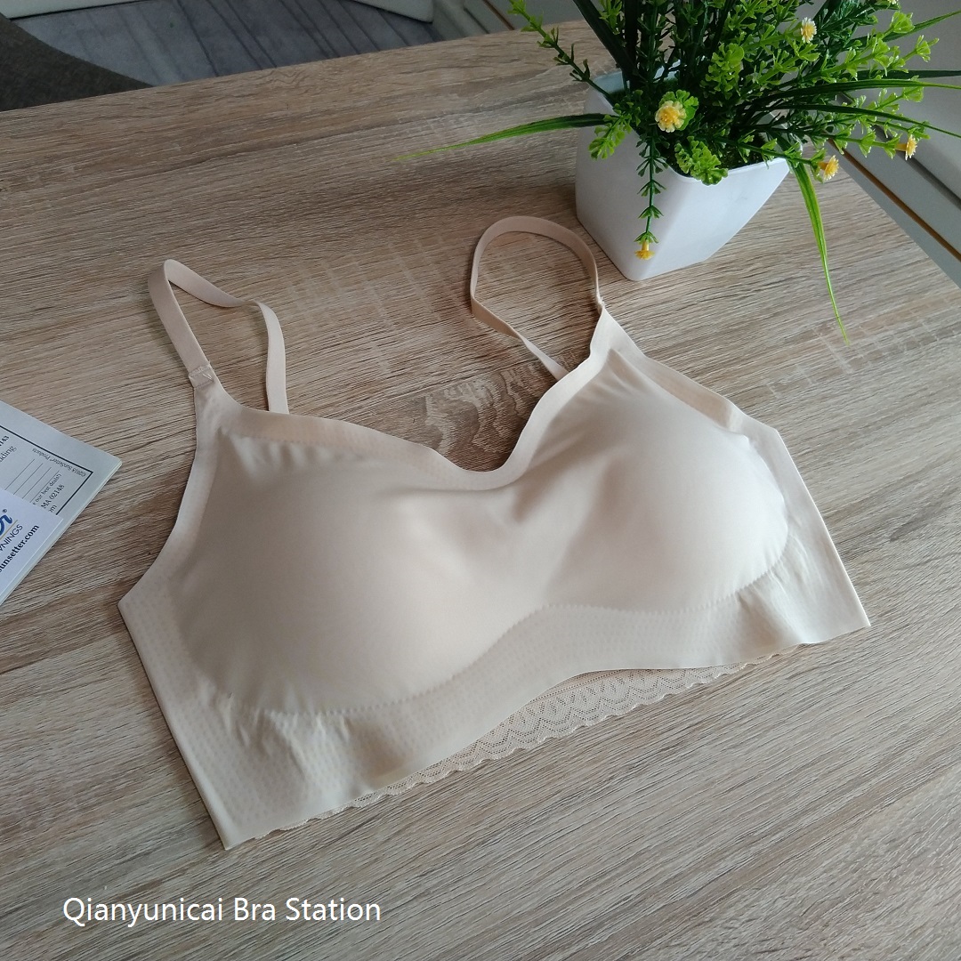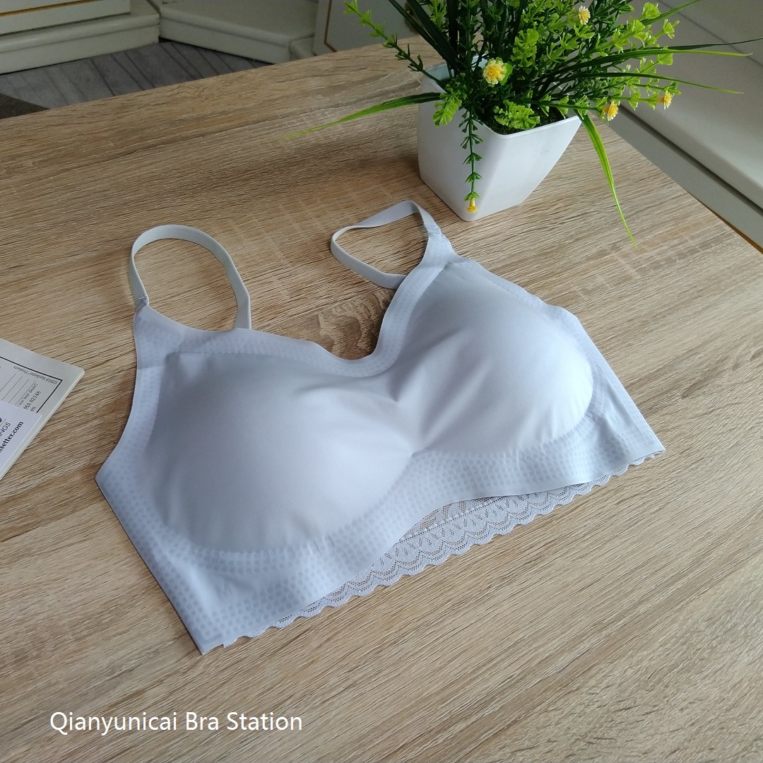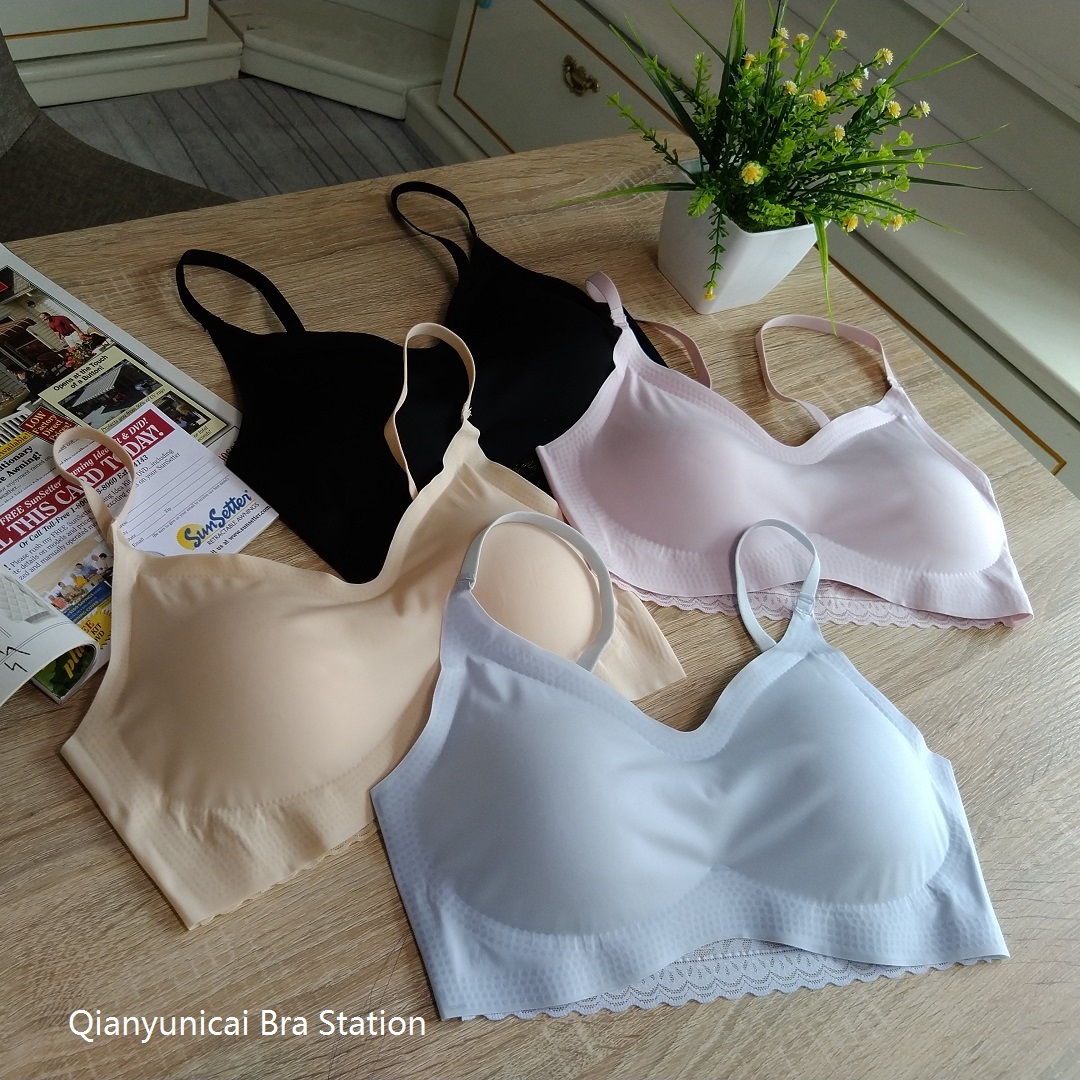 Japan Incognito ice silk cooling underwear Women's lace beauty back sports thin gathered base suspender without rim bra cover