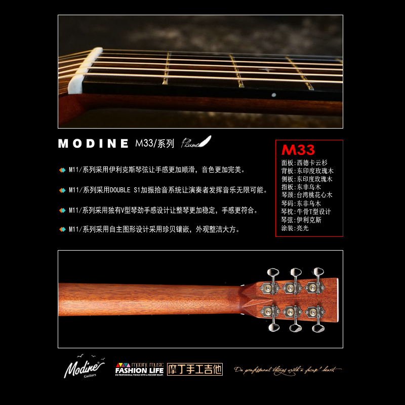 Modine Modin M33M Full Veneer Ballad Handmade Guitar 40 Inch Finger Play Grade Plus Vibration Pickup Electric Box Organ