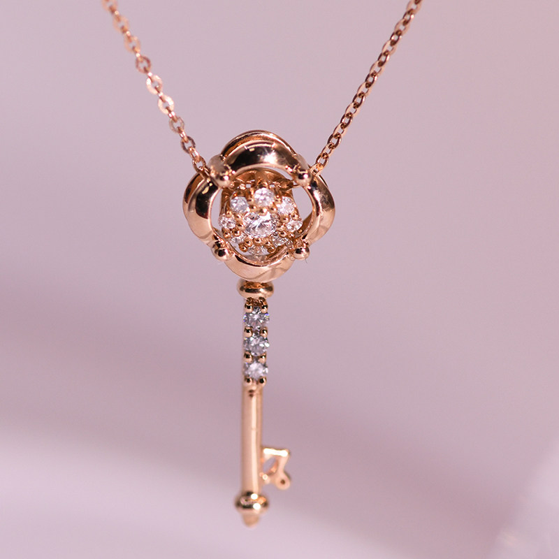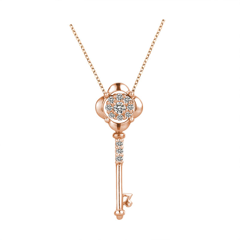 18k Rose Gold Key Diamond Necklace Woman One More Daring Action Group Inlaid Diamond Pendant Custom Platinum Gift