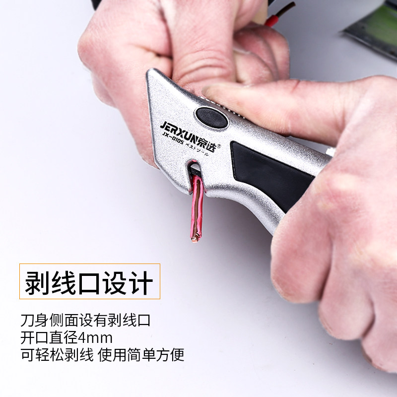 Jingxuan electrician special cable peeling utility knife industrial heavy-duty multi-function metal handle trapezoidal knife blade