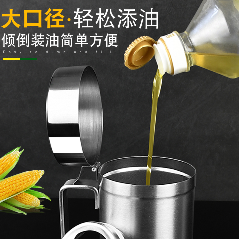 304 stainless steel oil pot kitchen large oil tank household oil barrel 1000ml with lid large capacity high-end oil bottle