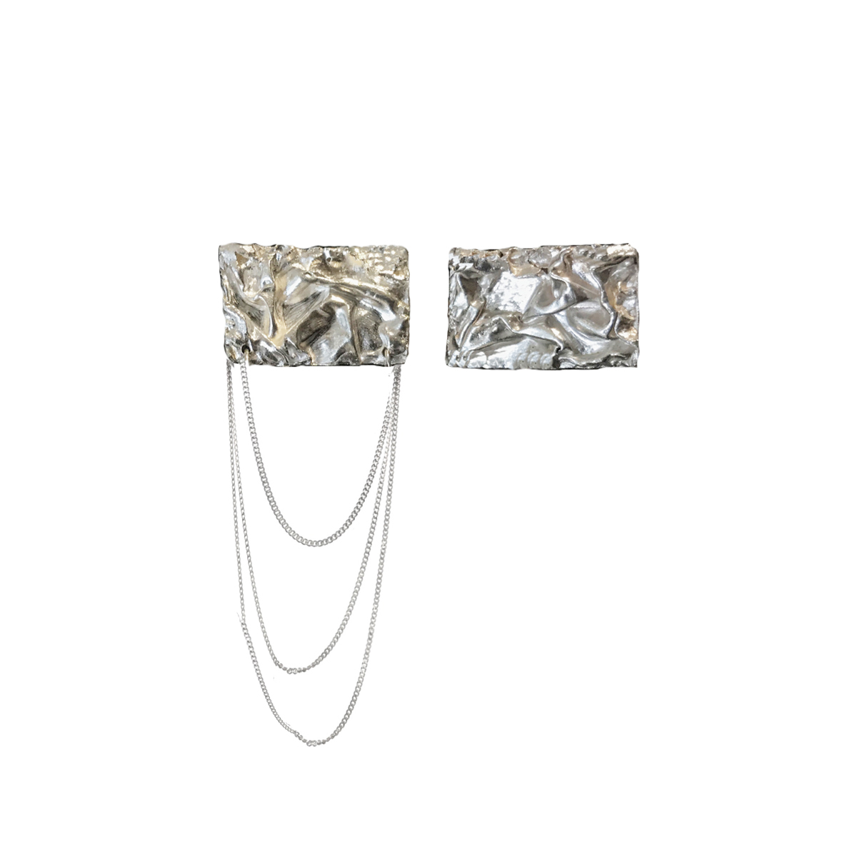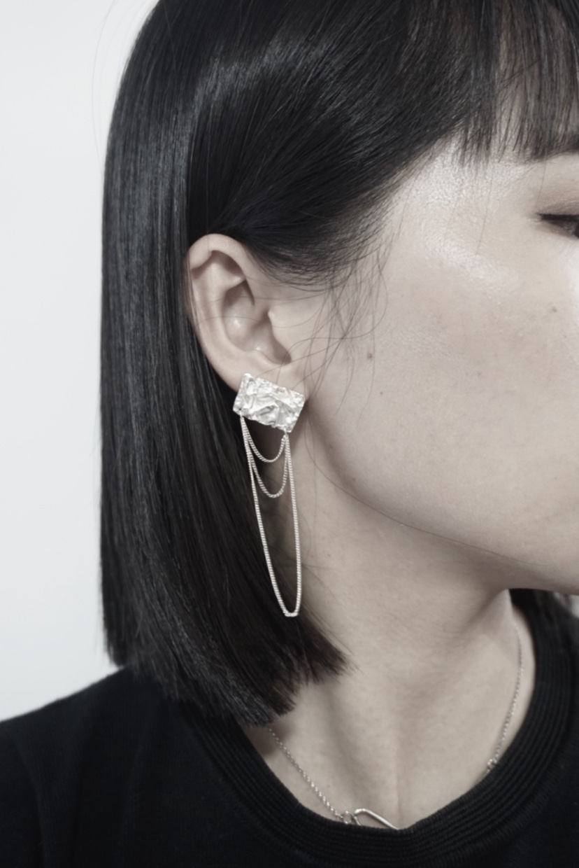 New fold series original design fashion personality hand pure silver asymmetric earrings