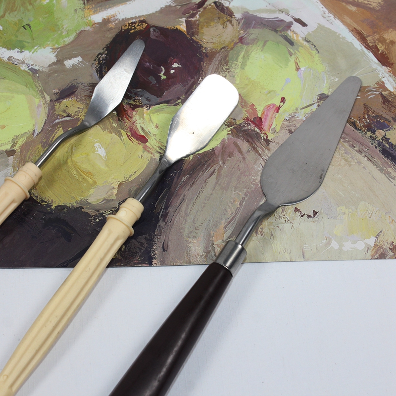 Flat-head scraper ordinary pointed scraper ordinary oil painting scraper wooden handle 5 sets of oil painting scraper