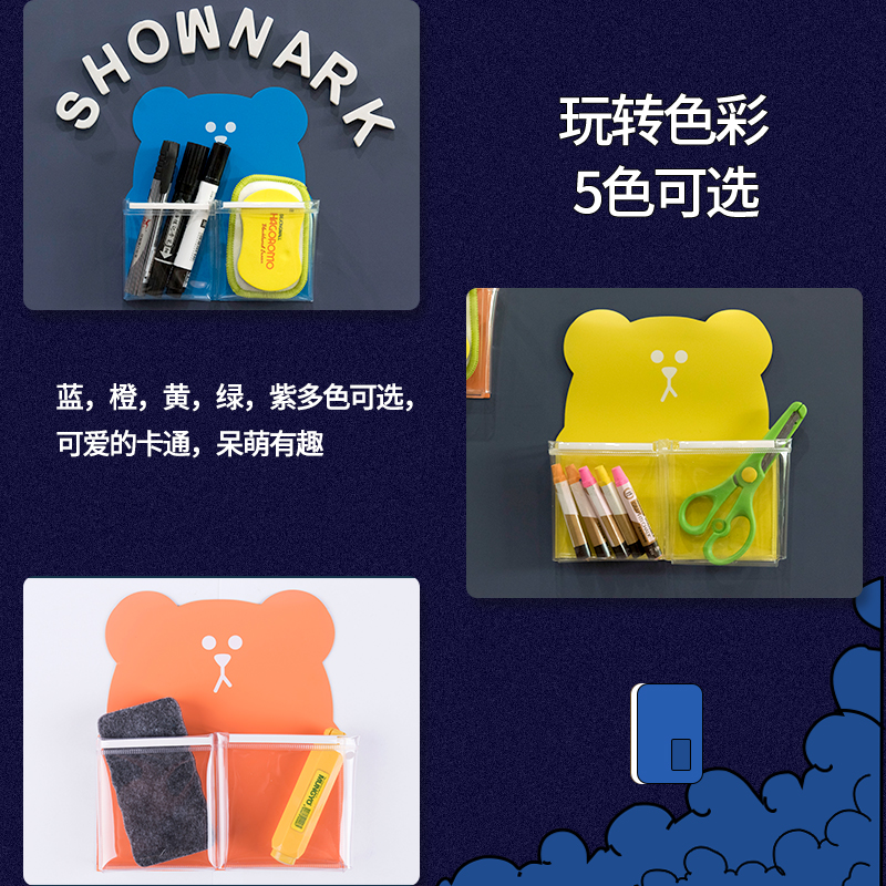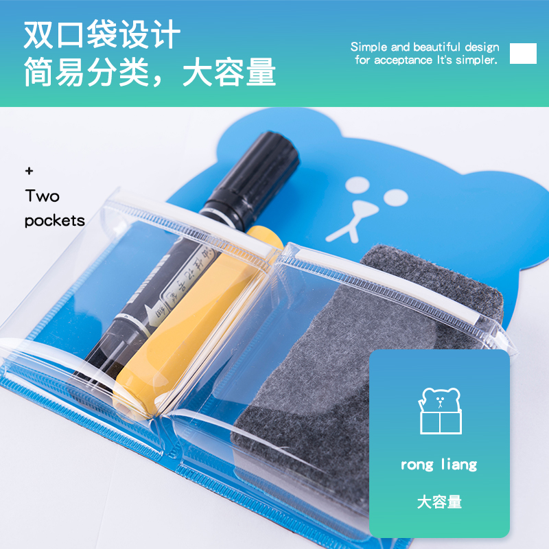 Book Beauty Guest Magnetic Whiteboard Green Board Blackboard Wall Pen bag Magnetic containing board Eraser Tool Bag Transparent Iron Furniture PVC closeout bag Healing Ensemble Small Bear Collection Bag