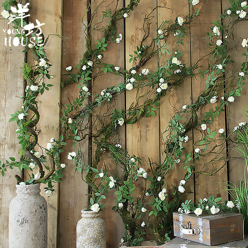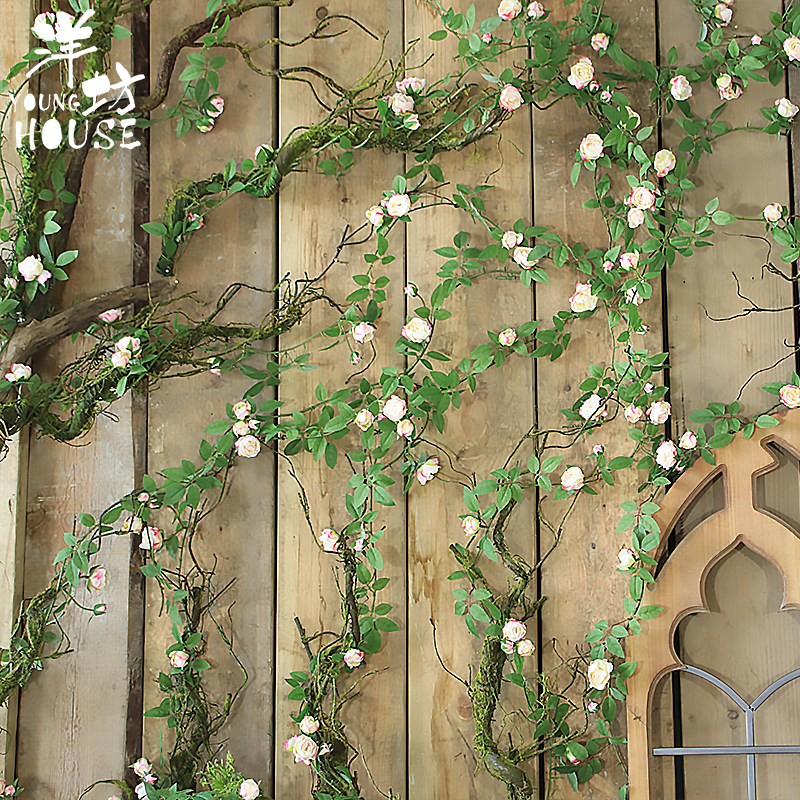 Yangfang Emulation Rose Flowers Vines Wall-mounted Fake Flower Decoration Living Room Air Conditioning Winding Plastic Flower Ring Wedding Wedding shooting props