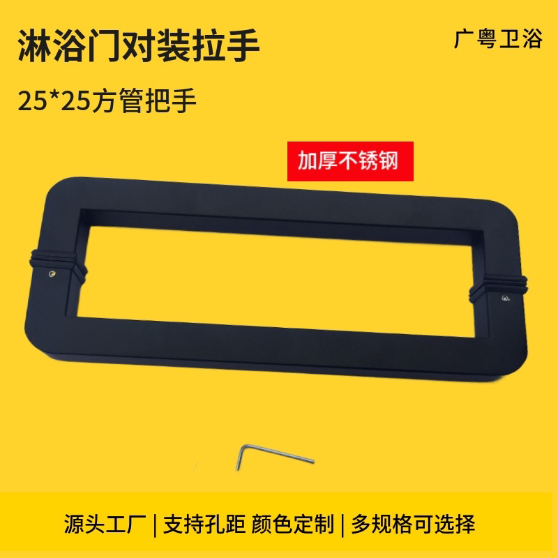 25 square pipe stainless steel shower room glass door pull door pull handle bathroom moving door pair with handle rose gold 300m
