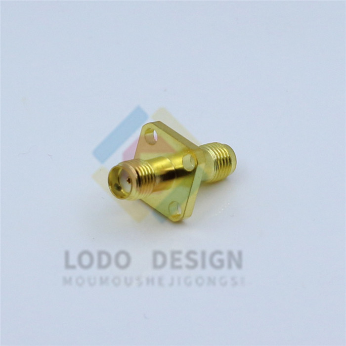 Copper gold-plated SMA SMA-KKF RF coaxial connector SMA female to female 4-hole flange fixed connector
