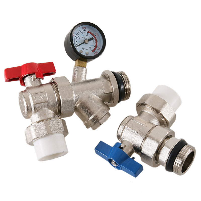 Angle PPR25*1 inch outer wire filter ball valve per pair (electroplated)Angle PPR25*1 inch outer wire filter ball valve with pressure gauge per pair (electroplated)Angle PPR25*1 inch