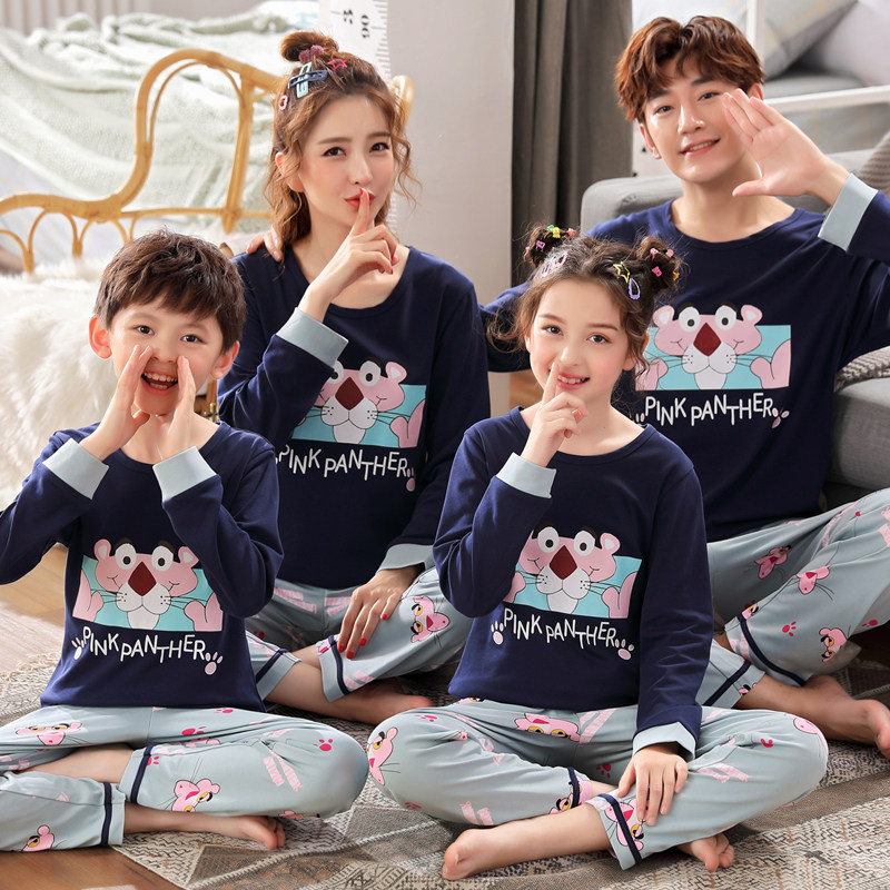 Children's pyjamas boy long sleeve pure cotton toddler girl's baby girl's baby spring autumn season a family of three mother women