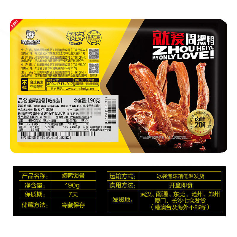 (Recommended by Weya)Zhou black duck flagship store lock fresh air conditioning enjoy braised duck collarbone 190g spicy snacks