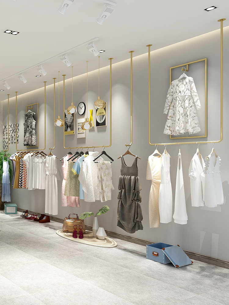 Clothing store display rack Wall shelf Hanging ceiling hanging gold children's clothing women's store hanging wedding hanger Wall hanging