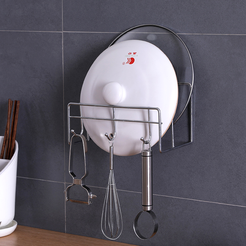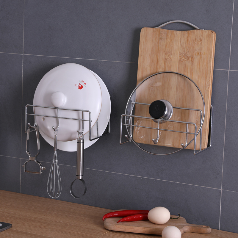 Pot lid rack wall-mounted kitchen punch-free wall double-layer hanging storage rack multi-functional pot lid rack cutting board rack