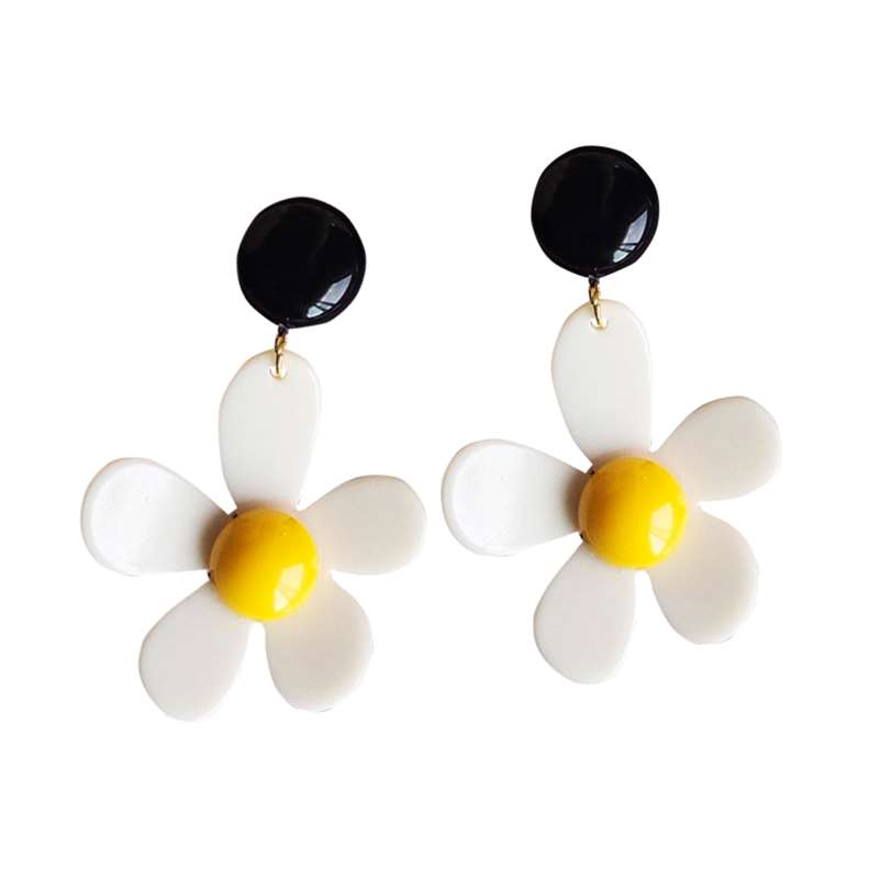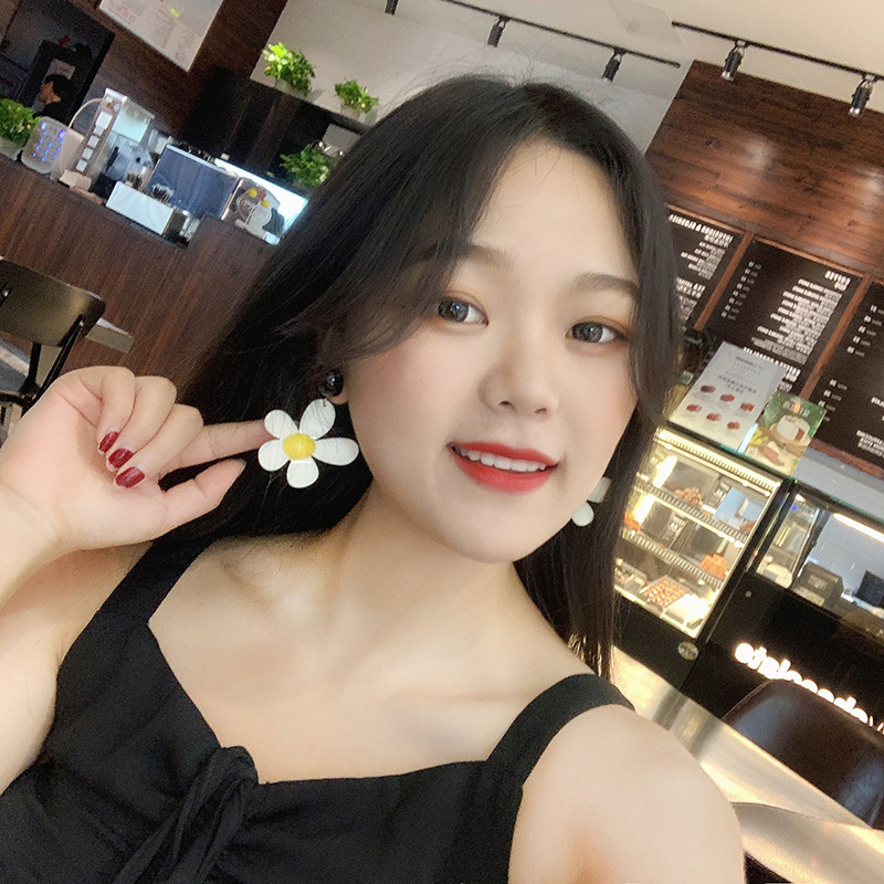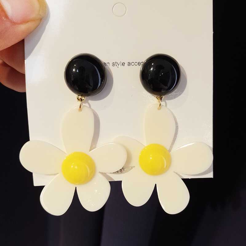 Korean exaggerated acrylic large flower earrings personality long daisy earrings versatile seaside wind stud earrings earrings women