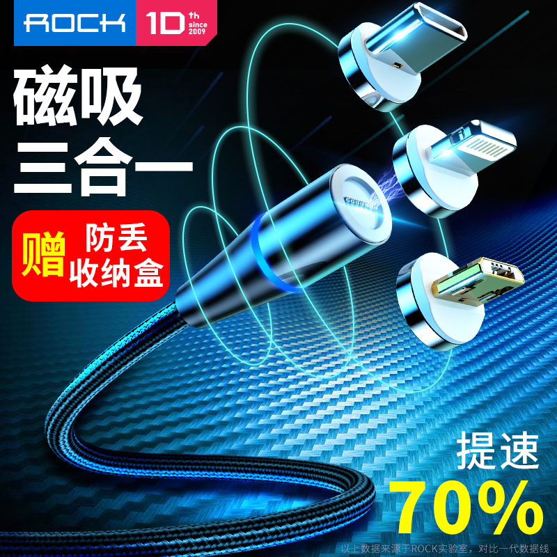 Magnetic data cable strong magnetic charging line device mobile phone fast charging Apple iphone Android three-in-one car flash charging Xiaomi type-c for Huawei Samsung OPPO super fast charging Universal