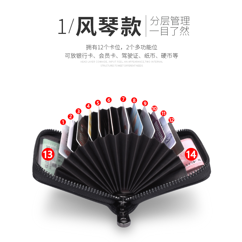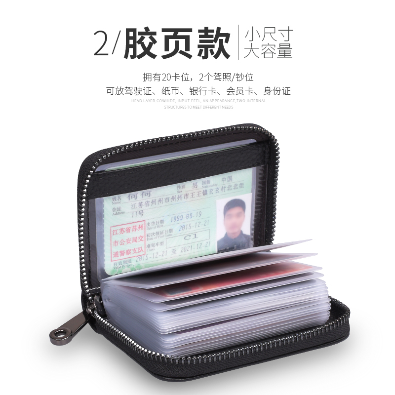 Card Bag Men Genuine Leather Multi-Blocking Document Clip Female Style Head Layer Bull Leather Financial Card Cover Large Capacity Laced Small Money Bag