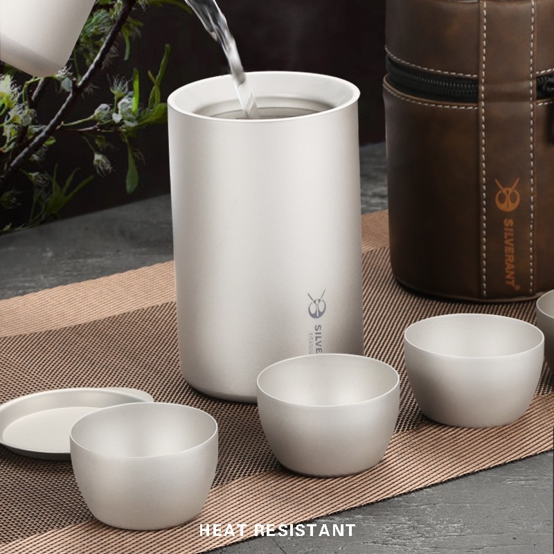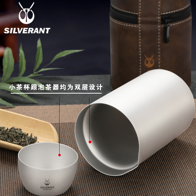 SILVERANT silver ant pure titanium double-layer anti-scalding Kung Fu Tea maker Eagle mouth with filter screen portable tea set set