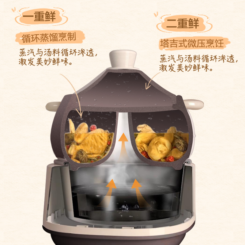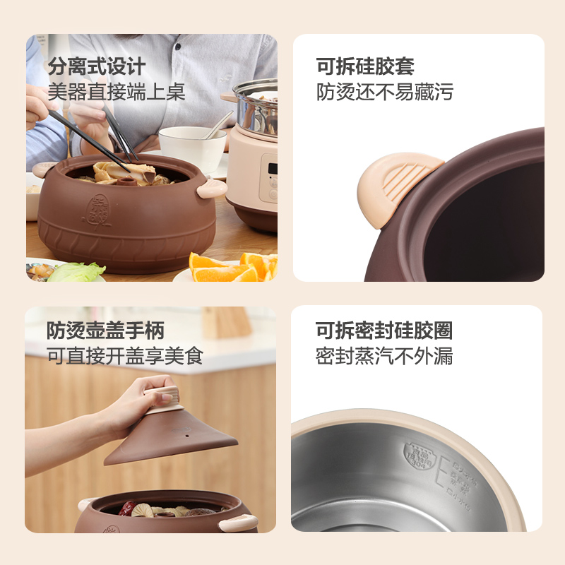 Bear purple sand electric stew pot Electric steam pot Water-proof steamer waterless soup household automatic electric steamer Electric casserole