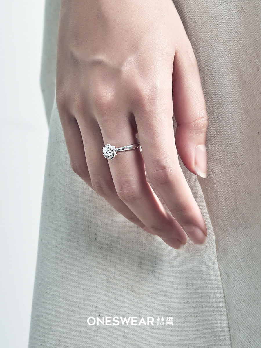 ONE SWEAR Van Gogh First Snow courting Wedding Diamond Ring Custom Group Inlaid Diamond Engagement Wedding Ring With the Lady Withdrawal-Taobao