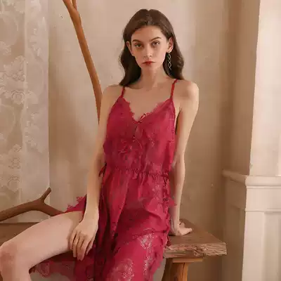 Fenteng summer fun suspender lace night dress women's thin sexy pajamas transparent temptation mesh spring and autumn suit