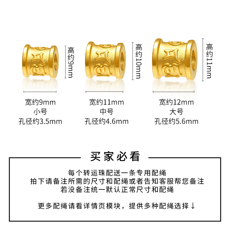 Gold transfer beads men's 999 pure gold 3D hard gold six-character mantra gold beads women's models couple models pure gold hand chisel