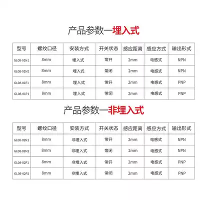 Guangli GL08 inductive proximity switch 24v 12v DC three-wire NPN PNP normally open normally closed sensor