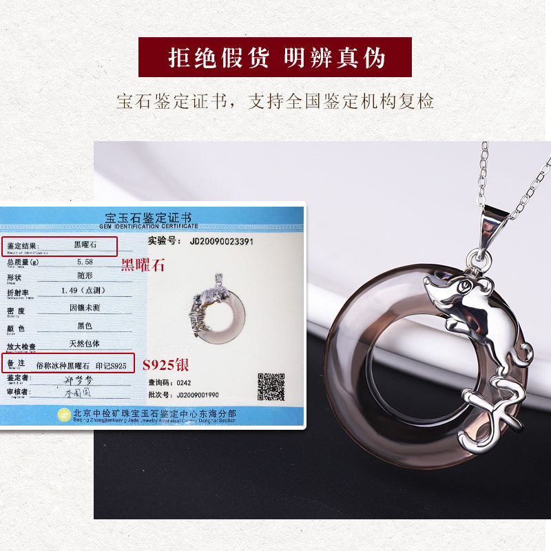 Zodiac Necklace Benevolent Year Cow Male tide Hip Hop Sterling Silver Horse Sheep Dog Obsidian peace buckle Men pendant women