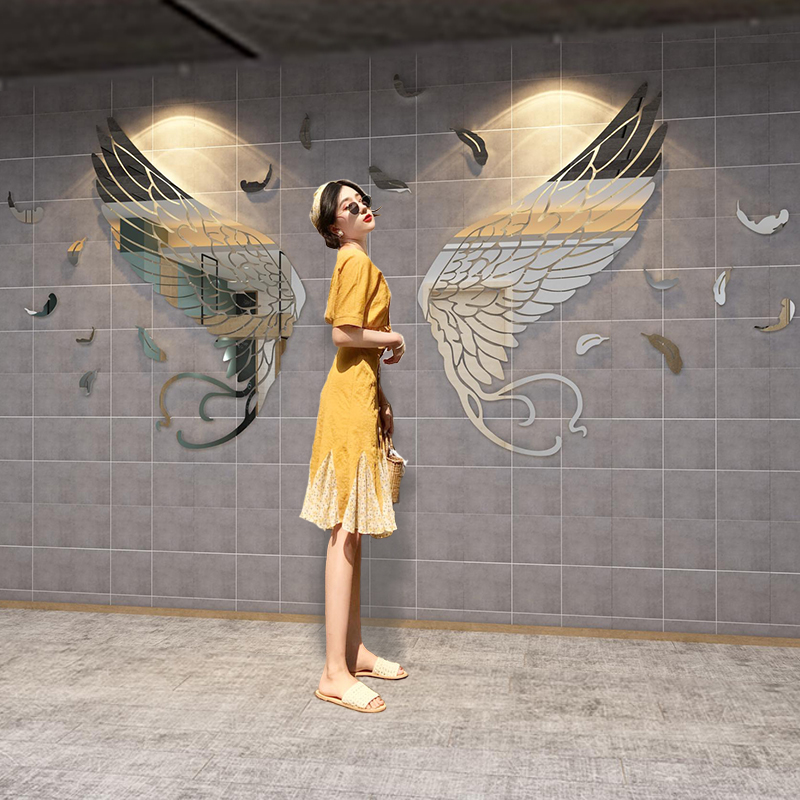 Internet celebrity punching point wings background wall surface selfie area layout milk tea cake shop decoration creative stickers