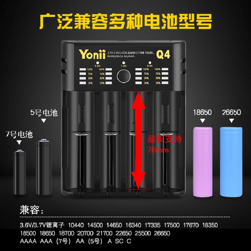 18650 Charger 4 groove USB plug 21700AA5 No. 7 26650 Smart lithium battery four-slot charger
