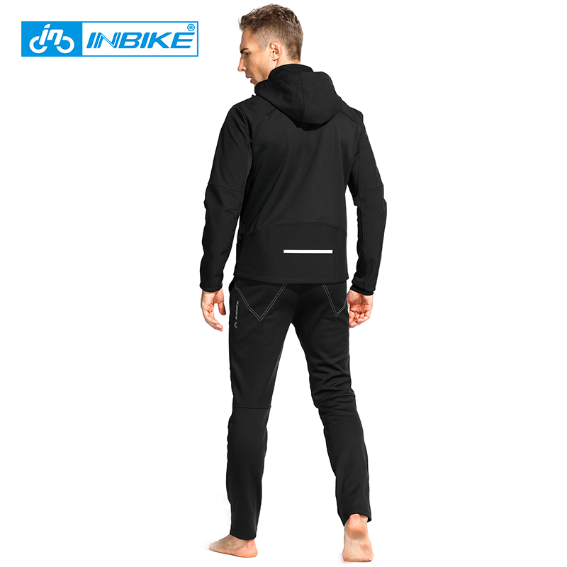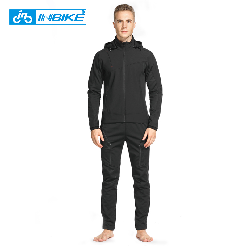 INBIKE winter windshield warm riding suit fleece long sleeve top male outdoor bicycle equipment detachable cap