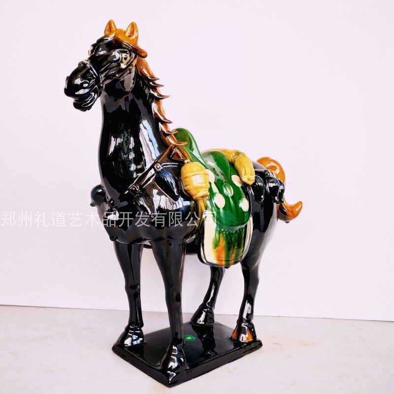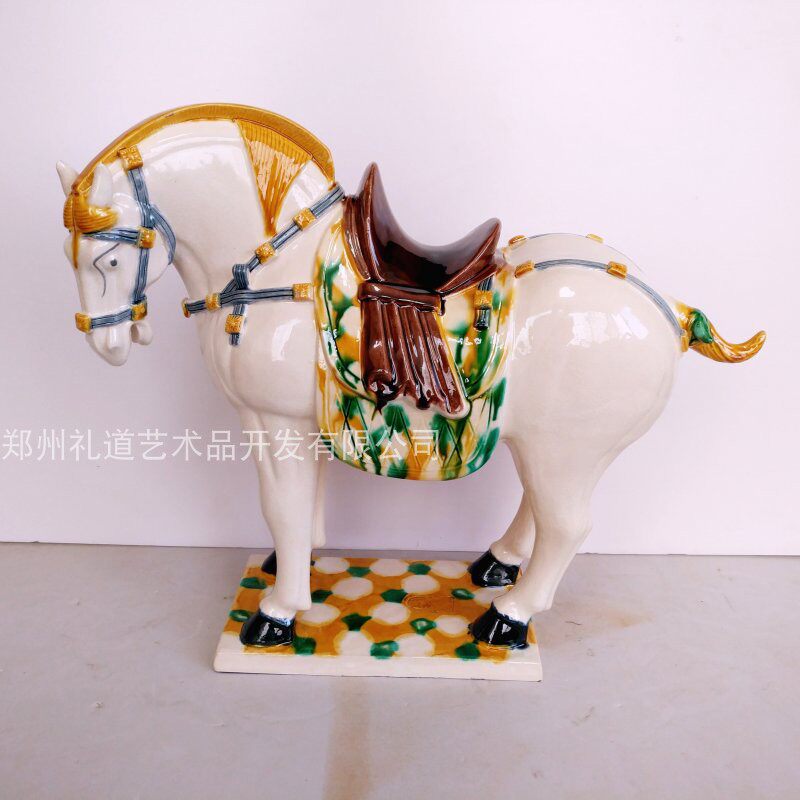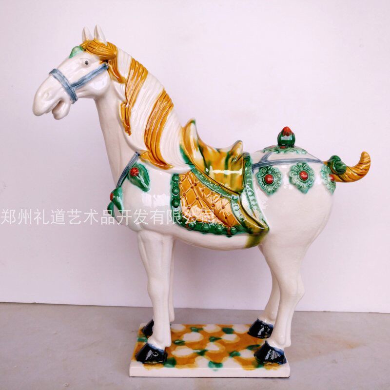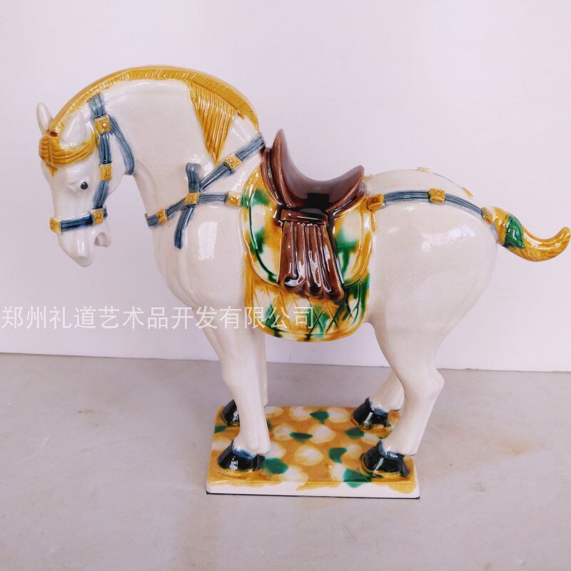 Zhengzhou traditional Tang three color crafts decorate the ancient Silk Road classical ceramic yellow horse business features gifts