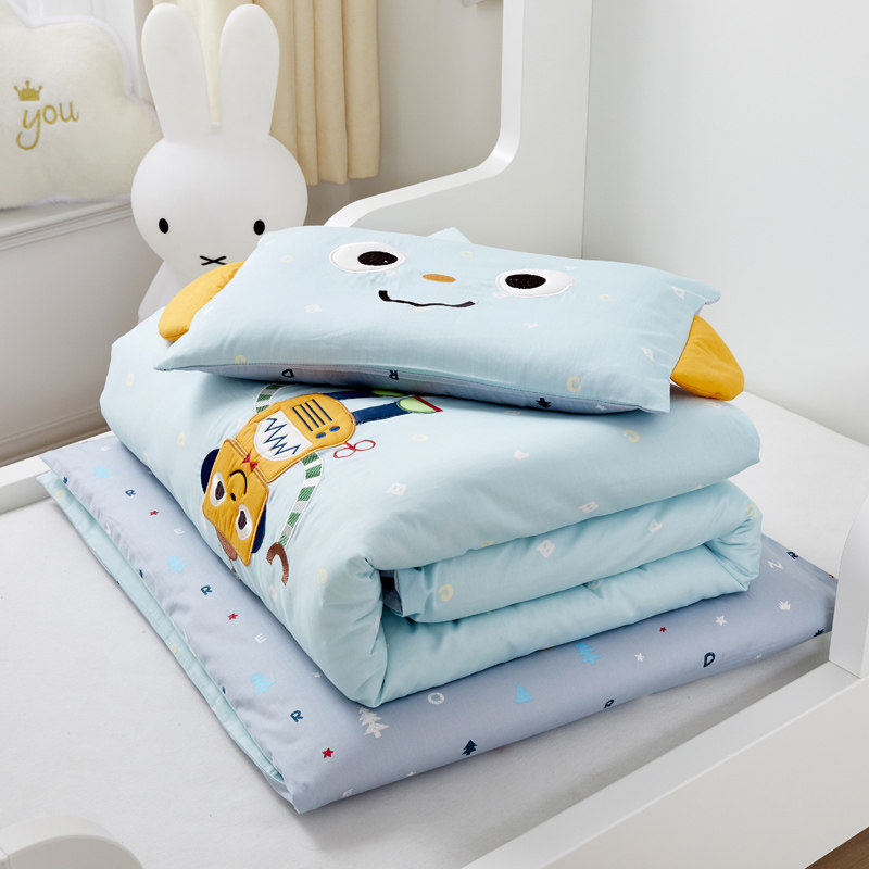 Kindergarten quilt Three sets of tribute satin embroidered quilt cover children 67 pieces of lunchtime bedtime bedclothes baby in garden bed products