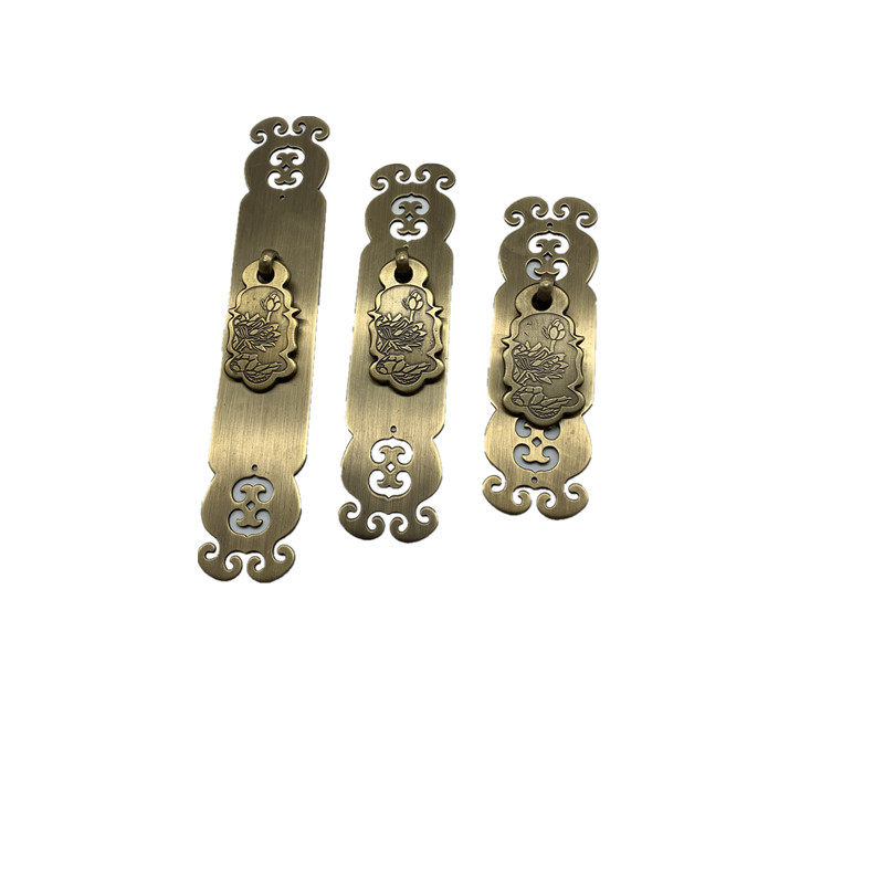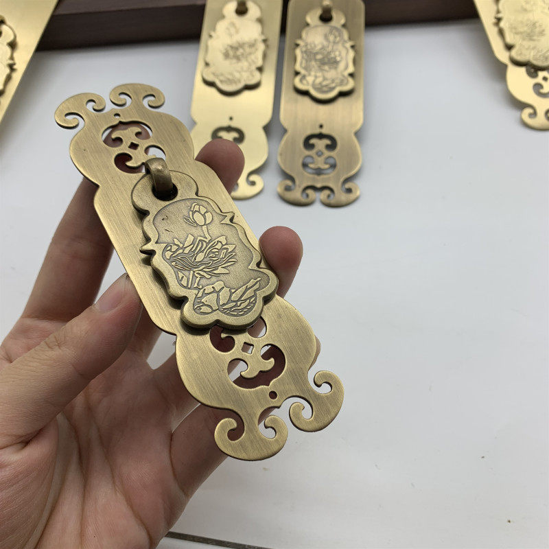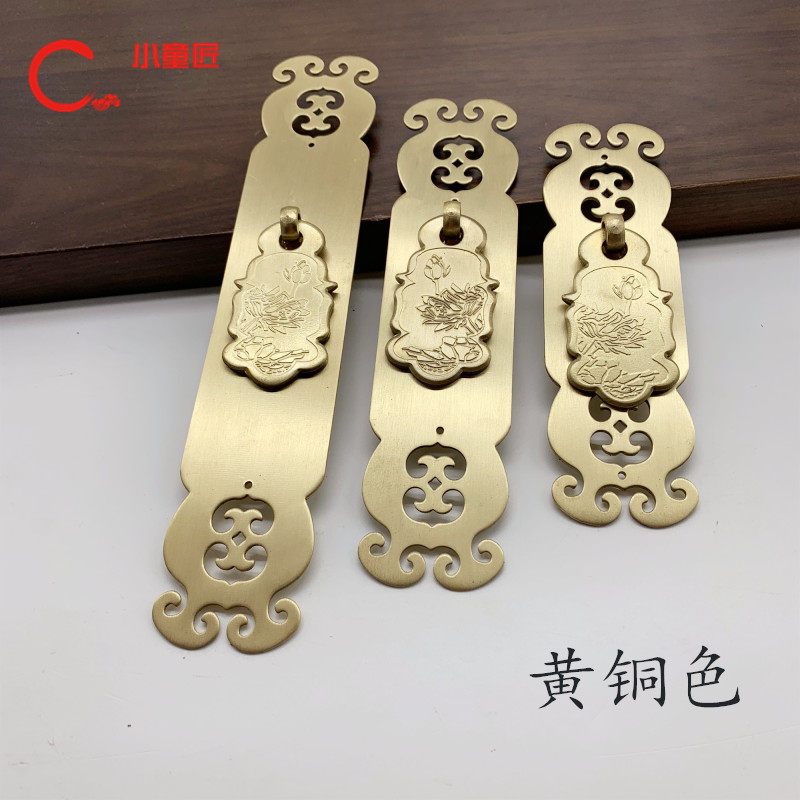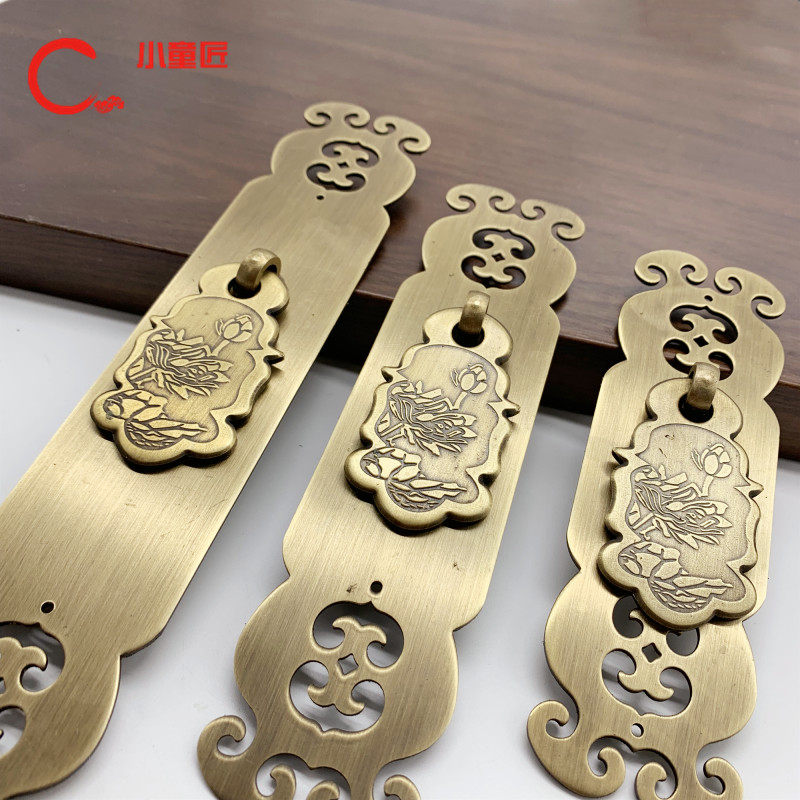 Chinese antique pure copper solid wood door door copper handle classical carved flower lattice door screen door large handle