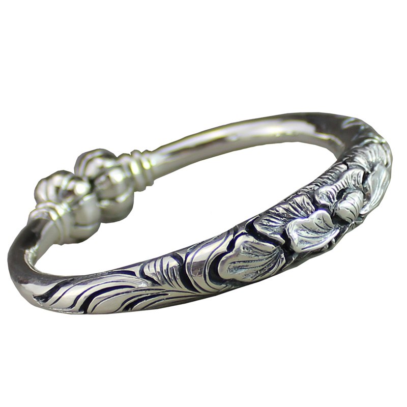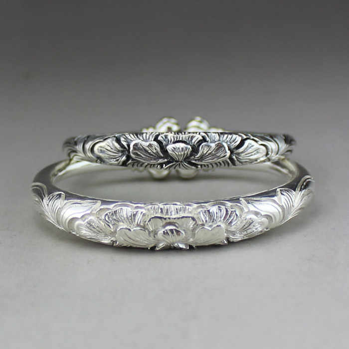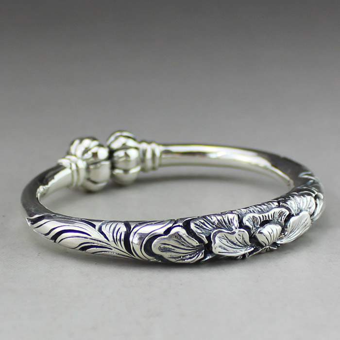 Guquan Silver Family Pumpkin Peony Bracelet Foot Silver 999 Pure Silver Handmade Retro Bracelet Sub Yunnan Snowflake Silver Custom Silver