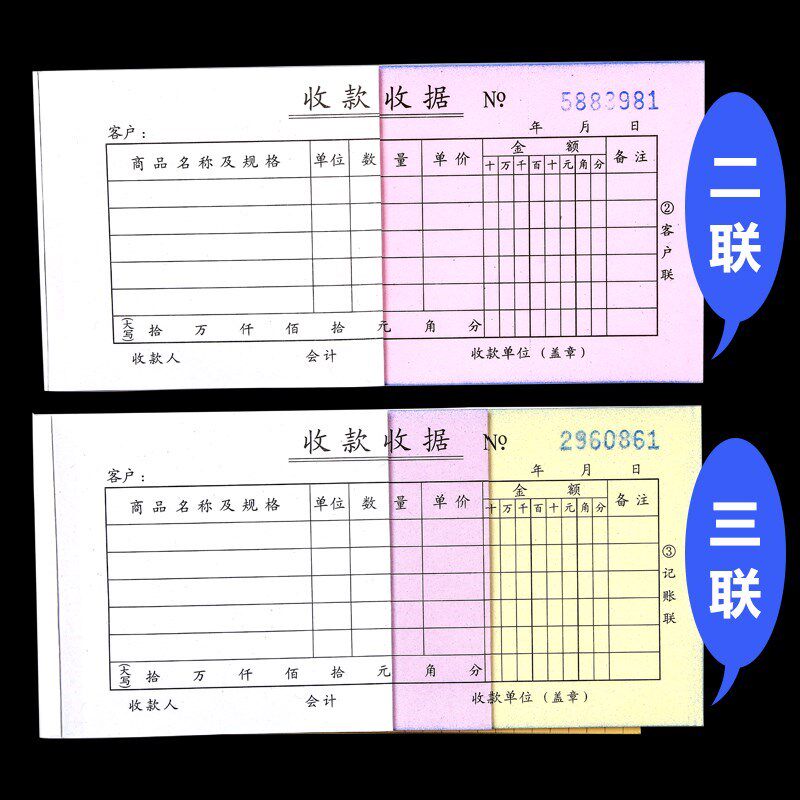 20 copies of two-in-one receipt 54k format three regular sizes