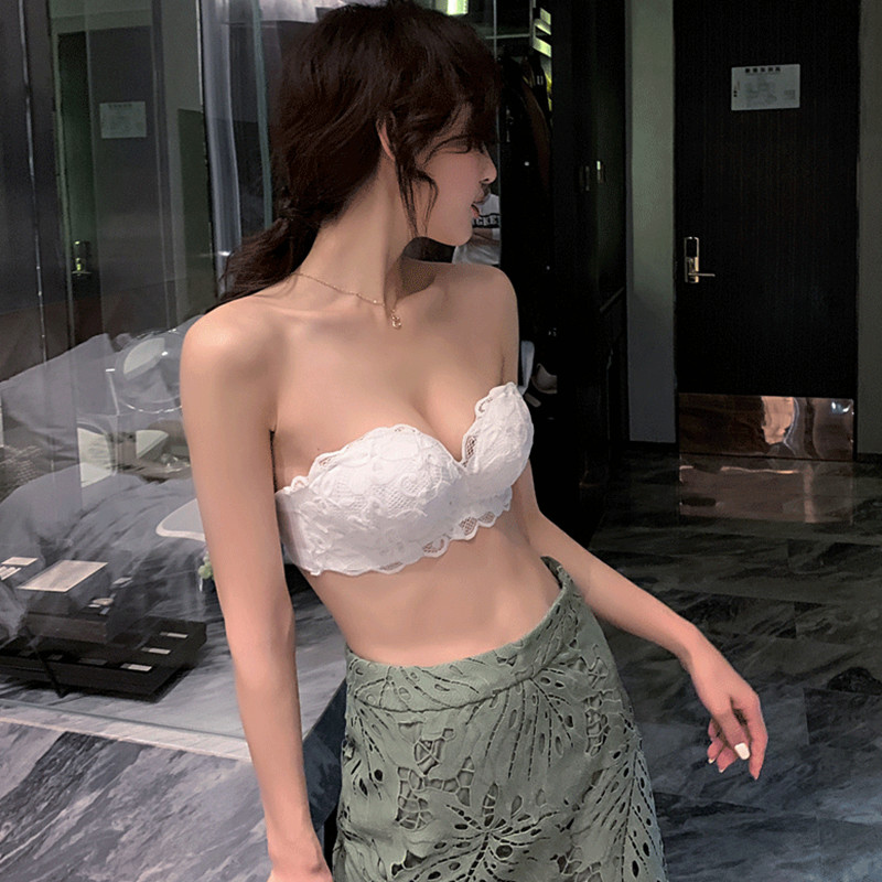 Japan without shoulder bra bra thickness thickness of bras gathering anti-slip sexy beauty revealed shoulder embroidery underwear suite