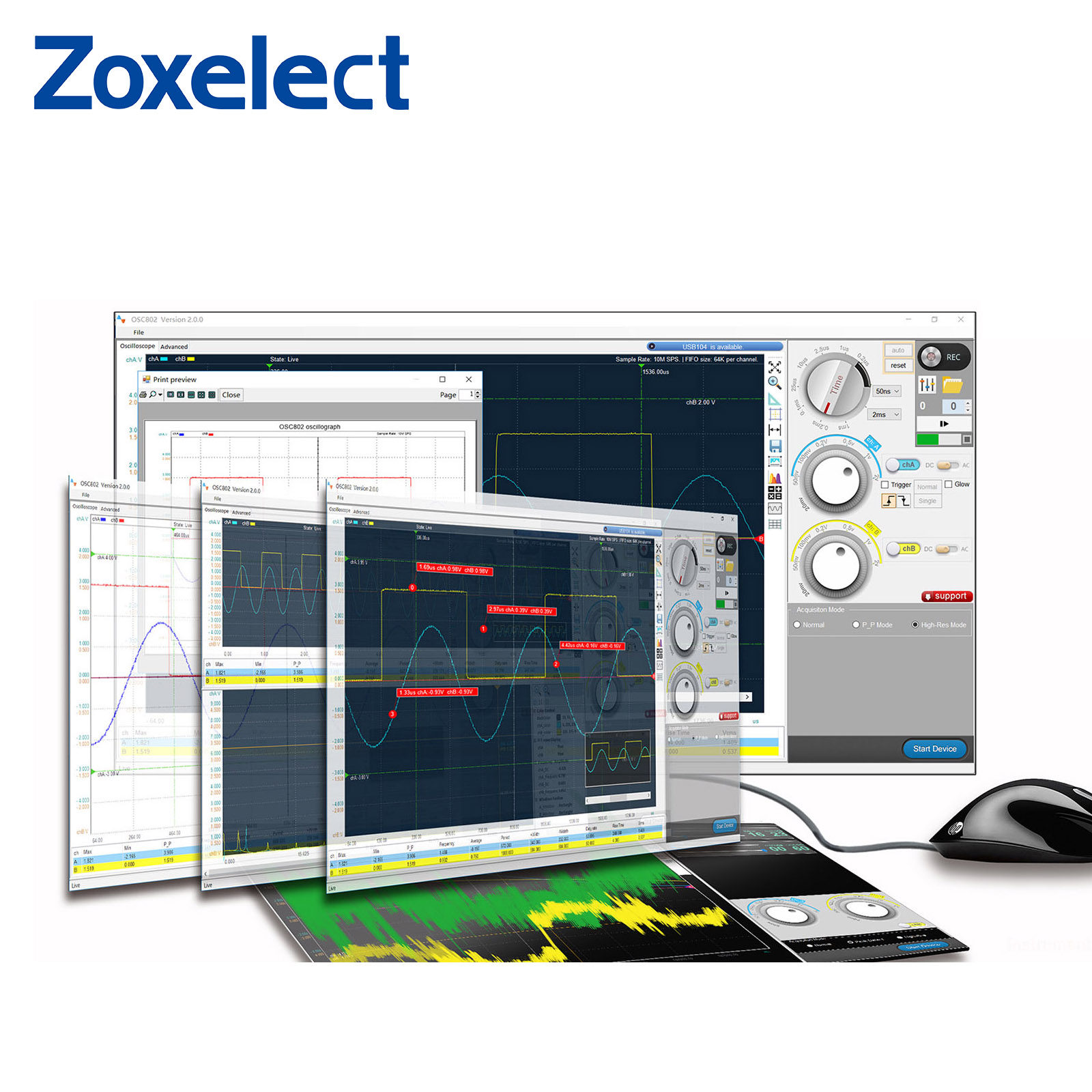 C550 virtual oscilloscope dual-channel PC digital handheld oscilloscope 50MHz bandwidth 1G with monitor USB cable