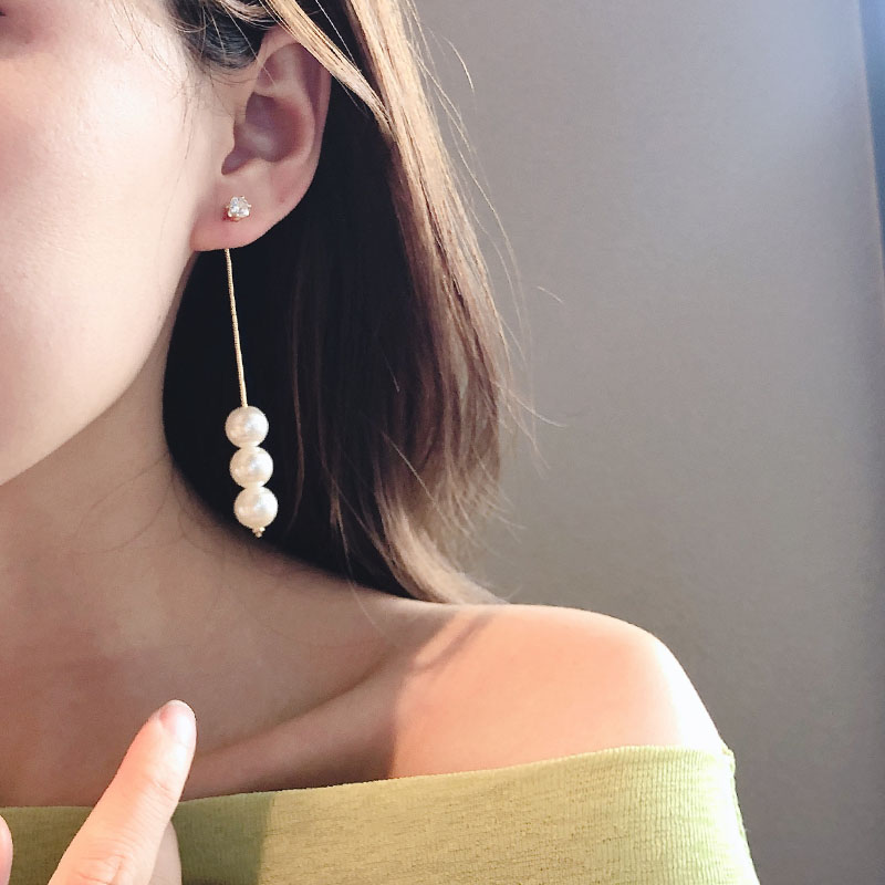 Earrings women's 2021 new trendy earrings temperament net red Korean long version pearl earrings asymmetric tassel earrings