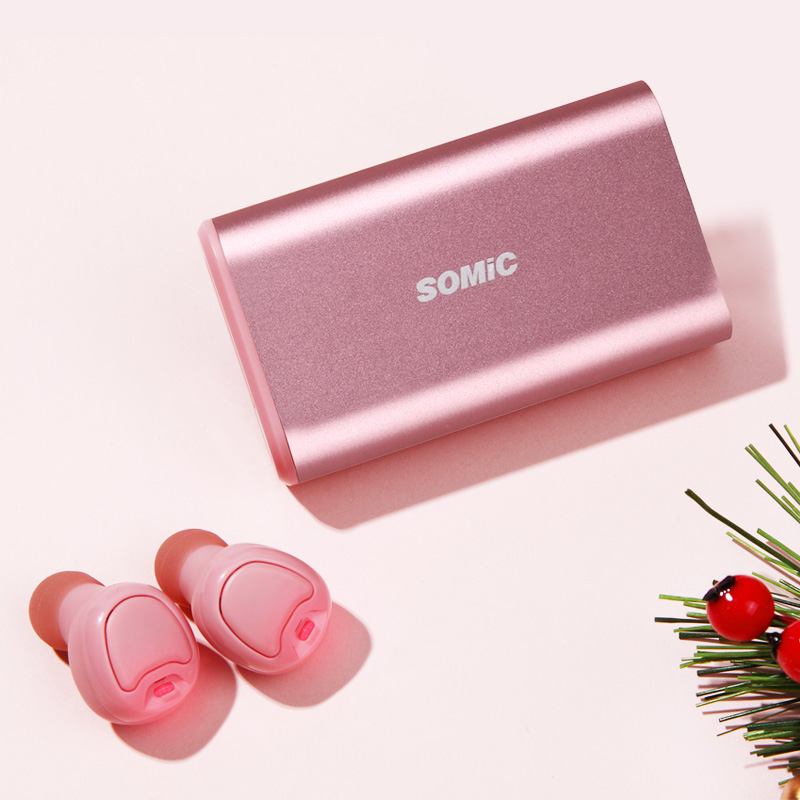 Somic Master's Beauty Section W20 Bluetooth Headphone Girls section Ladies in secondary Yuan Student Day Lovely Ear Style Single Binaural Sports Running Games Apple Anzor True Wireless Pink