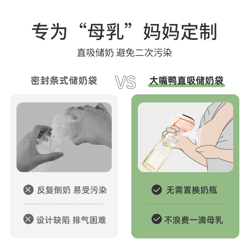 Big mouth duck milk storage bag breast milk preservation bag connected to breast pump small capacity 200ml milk disposable storage bag