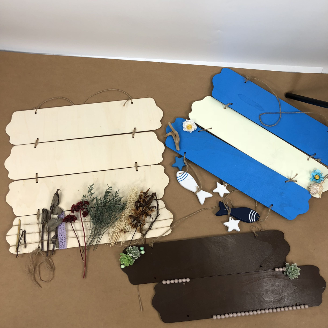 Assorted dry flowers 1 pack of four hanging one piece (material pack) a bunch of white small fish, coffee-colored wooden board 1 piece, two hanging ornaments (one set of material guns) primary color wooden board 1 piece white paper flower 6 pcs blue paper flower 6 pcs dark blue