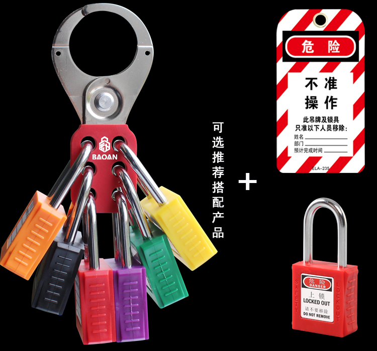 Baoan locks multi-person management hasp lock six interlocks interlocking locks steel 6-hole hasp lock 1 inch 1 5 inch