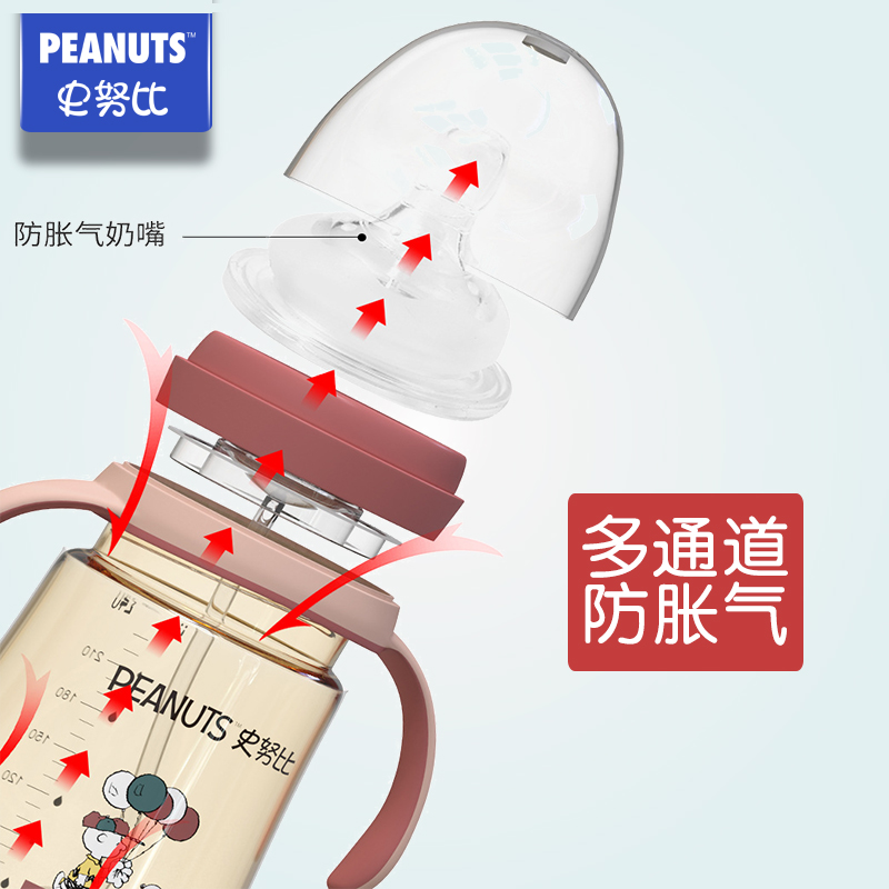 Snoopy PPSU bottle wide caliber 300ml baby anti-flatulence duck mouth suction mouth baby more than 6 months old anti-fall