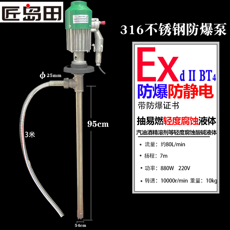 Craftsman Shimada electric explosion-proof anti-static oil pump 304 stainless steel oil barrel pump gasoline pump portable liquid pump