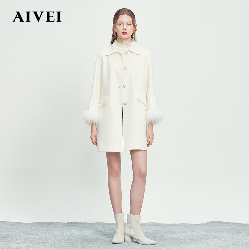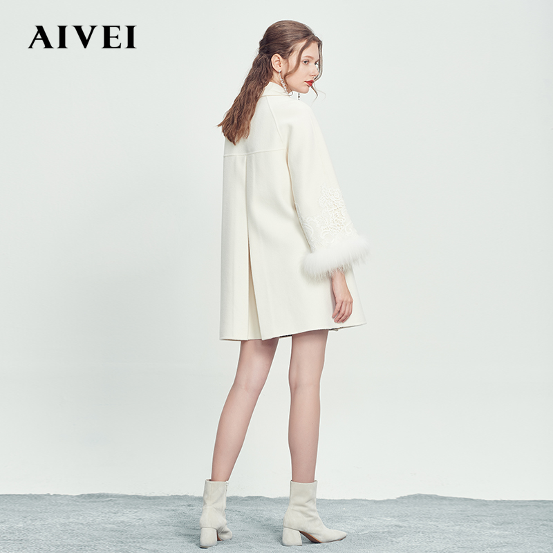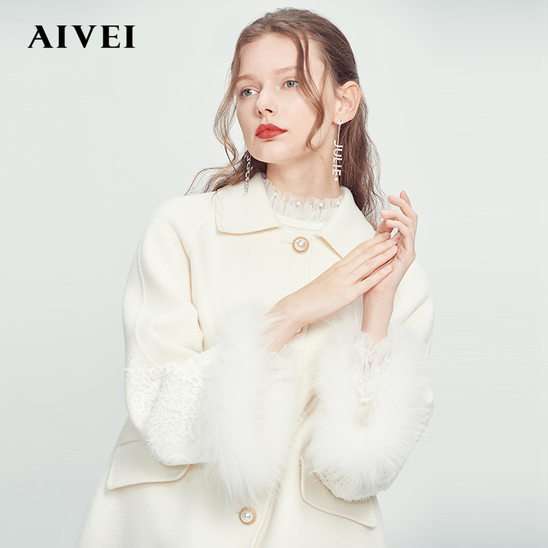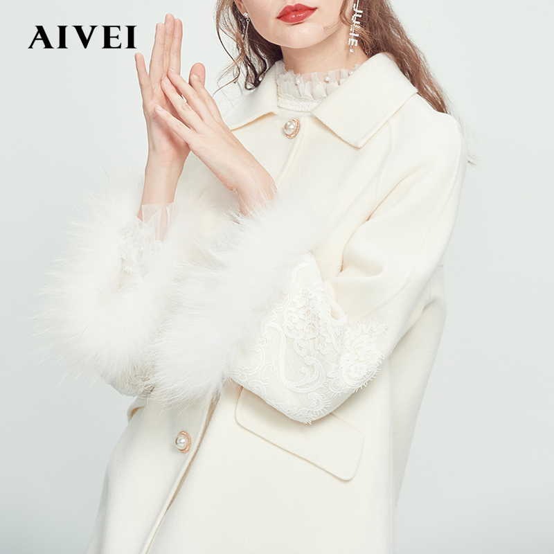 AIVEI Hingga Ai Wei Winter New Lace splicing with a long version of wool in wool, and a coat of fur