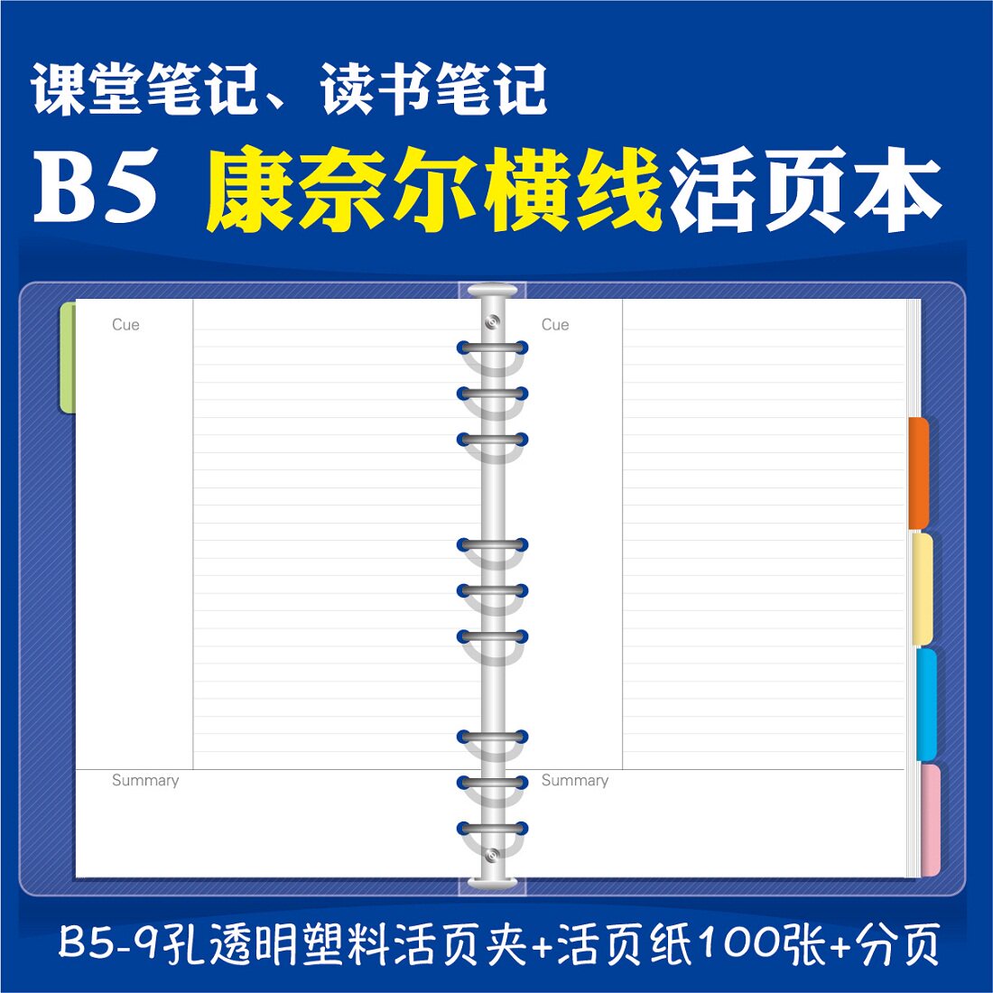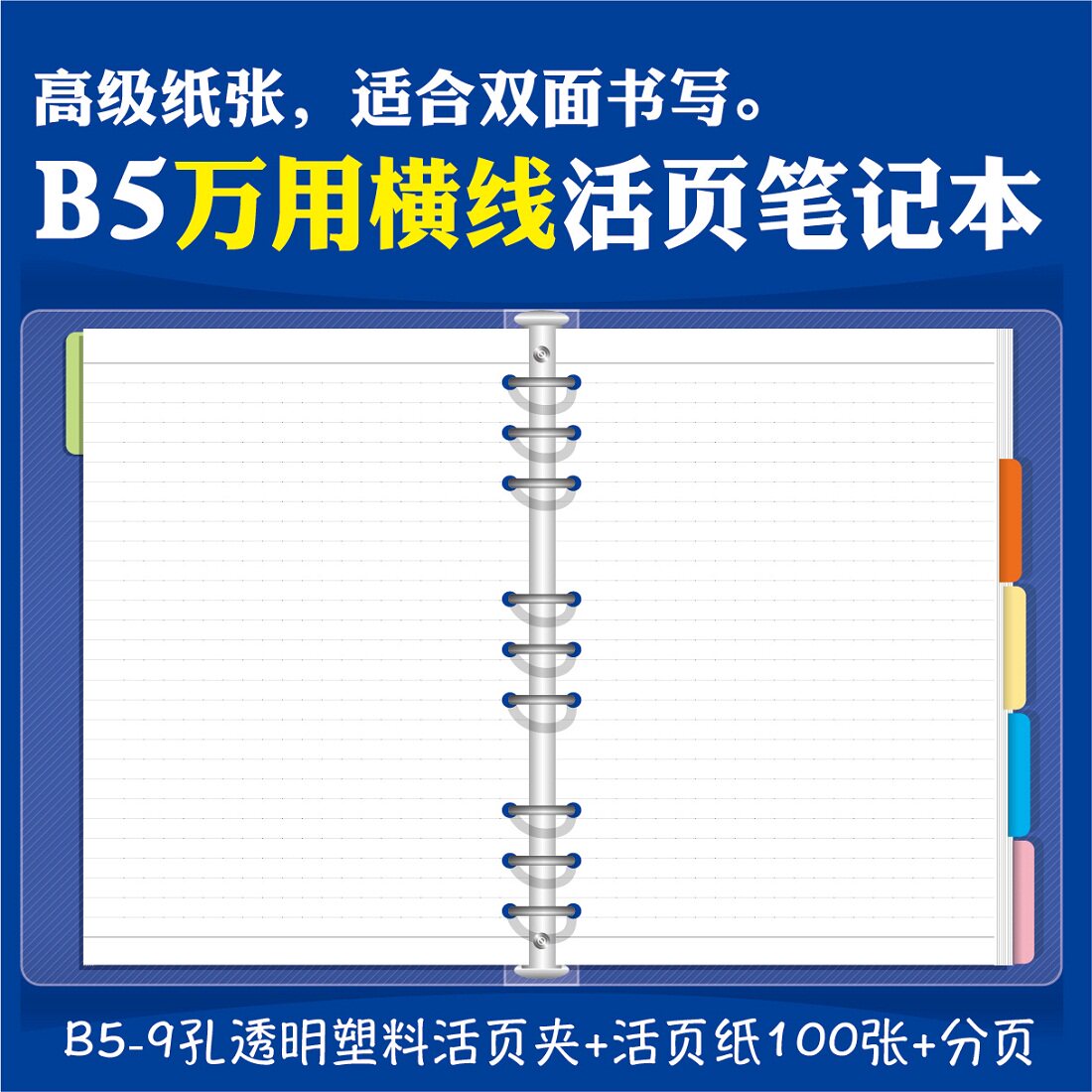 9 holes B5 transparent clip horizontal line 100 pagination