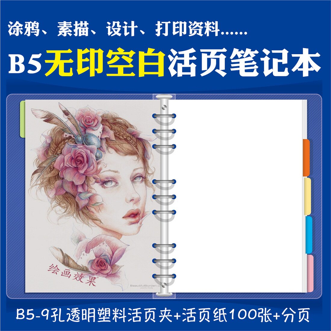 9 holes B5 transparent clip blank 100 pagination