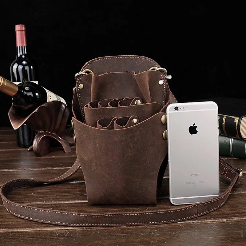 Crazy horse leather backpack scissors bag hair stylist waist bag management tool bag special haircut leather messenger leather shoulder bag
