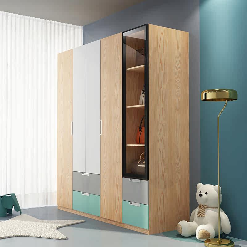 One meter love master bedroom wardrobe Modern simple bedroom multi-function cabinet Environmental protection plate flat door large wardrobe combination