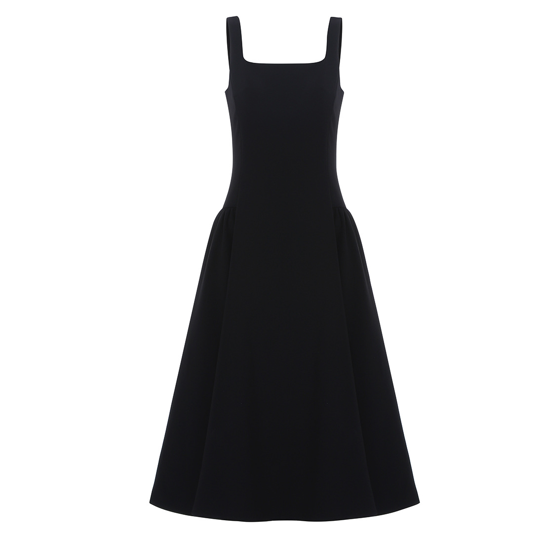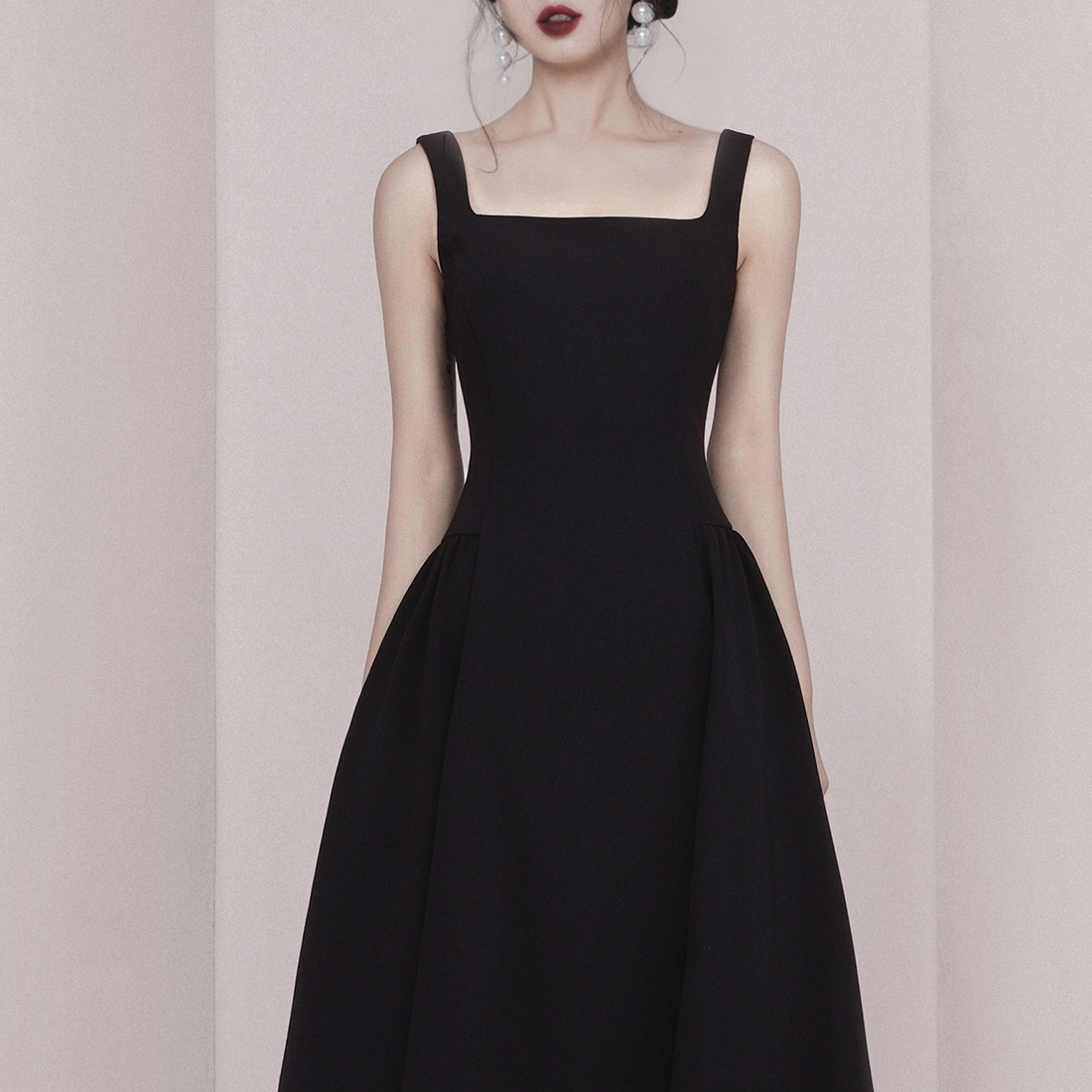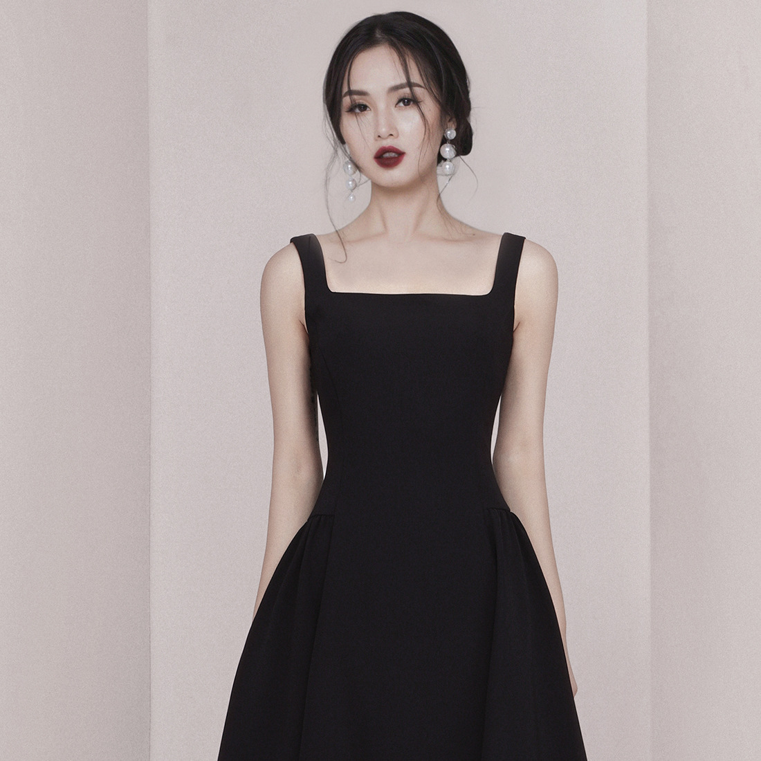 Thai trendy brand retro Hepburn style little black dress celebrity black suspenders high waist slimming A-line mid-length dress